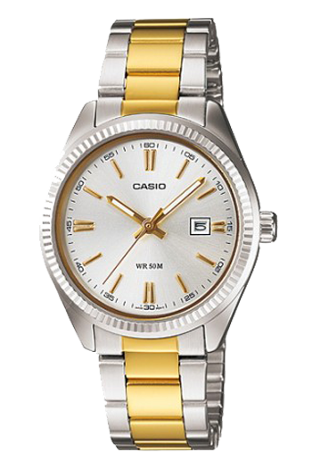Reloj CASIO de caballero MTP-1302SG-7. Esfera y caja plateada, correa dorada.
