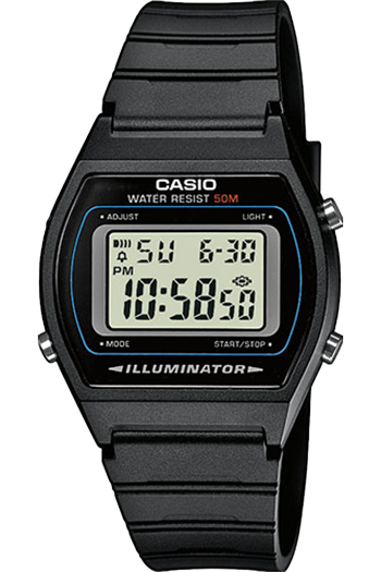 CASIO COLLECTION W-202-1AV. Cronómetro de 1-100 segundos, Resistente al agua hasta una profundidad de 50 metros, Diseño retro popular, Retroiluminación LED.