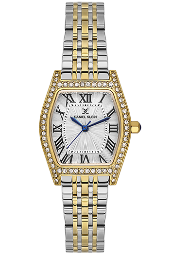 Reloj analógico para mujer DANIEL KLEIN DK-14106-3, Con esfera blanca, caja y correa de acero bicolor. 27 mm.