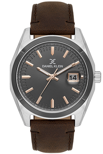 DANIEL KLEIN DK-14138-6. Reloj analógico para hombre. Cuenta con una esfera gris con fecha, una caja de acero de 42mm con un bisel gris y una elegante correa de piel marrón. Equipado con un fiable movimiento de cuarzo japonés.