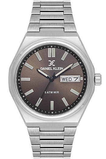 DANIEL KLEIN DK-14150-4. Reloj analógico para hombre. Cuenta con una esfera marrón con fecha, una caja de acero de 42mm y una elegante correa de acero plateada. Equipado con un fiable movimiento de cuarzo japonés.