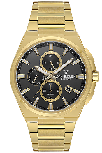 DANIEL KLEIN DK-14214-4 Reloj multifunción. Cuenta con una esfera azul con tres sub-esferas, una caja de acero de 43 mm y una elegante correa de acero dorada. Su movimiento de cuarzo japonés y su resistencia al agua hasta 50 metros lo convierten en el complemento perfecto para el día a día.