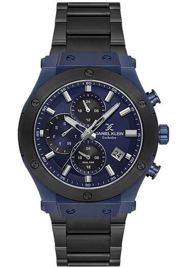 DANIEL KLEIN DK-14227-5 Reloj multifunción. Cuenta con una esfera azul con tres sub-esferas, una caja de acero de 43mm y una elegante correa de acero negra. Su movimiento de cuarzo japonés y su resistencia al agua hasta 50 metros lo convierten en el complemento perfecto para el día a día.