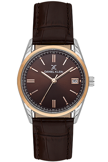 DANIEL KLEIN DK-14135-6. Reloj analógico para mujer. Cuenta con una esfera marrón con fecha, una caja de acero de 30mm y una elegante correa de piel marrón. Equipado con un fiable movimiento de cuarzo japonés.