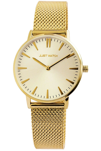 Reloj JUST WATCH para señora. Con caja de acero de 33 mm de diámetro, esfera analógica de tres agujas y correa milanesa de acero. 3 ATM
