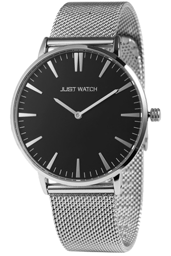 Reloj unisex JUST WATCH con correa milanesa de acero inoxidable. Este reloj, especialmente delgado, luce maravillosamente tanto en muñecas femeninas como masculinas. Impulsado por un mecanismo Miyota de alta calidad.