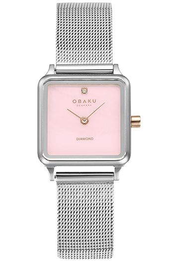 OBAKU ADAMAS BEGONIA V301LXCPMC. Con su diseño cuadrado y esquinas redondeadas, este reloj cuenta con un ancho refinado de 23 mm, lo que lo hace pequeño, pero impactante. Adornado con un diamante de corte simple SI1 de origen responsable a las 12 en punto, añade un toque de lujo al diseño.