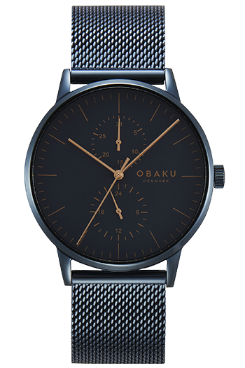 Este llamativo reloj para hombre presenta una esfera azul profundo con subesferas multifunción y detalles luminosos para mayor claridad. La delgada caja de 40 mm con recubrimiento azul y el brazalete de malla a juego crean un reloj danés audaz pero sofisticado.