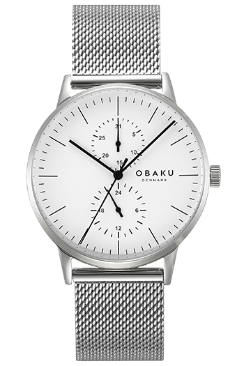 Una interpretación limpia y moderna del reloj multifunción. La esfera blanca brillante, enmarcada en una caja delgada de acero inoxidable de 40 mm, muestra tanto la fecha como los subesferas de 24 horas. Terminado con una pulsera de malla de acero a juego, es una pieza atemporal para el uso diario.