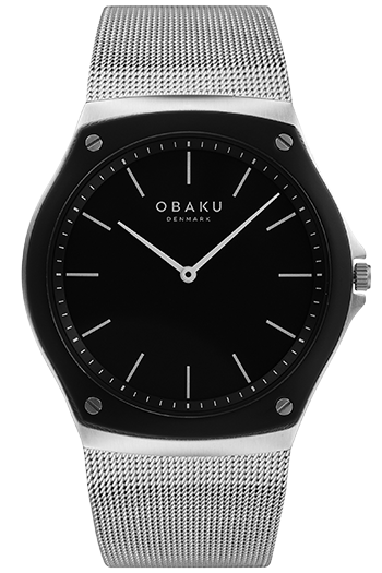 OBAKU LAGEN MONOCHROME V316GXABMC. Con un grosor inferior a 5 mm, combina la elegancia del minimalismo escandinavo con un detalle de diseño atrevido, cuatro tornillos refinados en el anillo superior. Protegida por un cristal de zafiro y un brazalete de malla de acero inoxidable