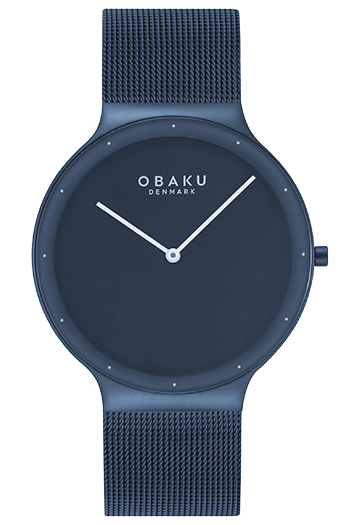 Obaku NET Marine Ultra delgado y fabricado con cristal de zafiro, este reloj para hombre de 40 mm presenta una esfera azul profundo con marcadores sutiles en los bordes y agujas claras para un contraste nítido. El cristal de borde a borde se integra con la pulsera de malla azul mediante una solución