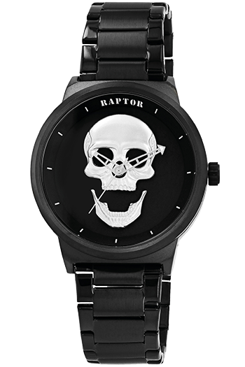 Reloj para hombre Raptor con calavera y correa de acero inoxidable. El reloj de pulsera analógico de 3 agujas para hombre de la marca Raptor cuenta con un mecanismo Miyota 2035 de alta calidad. Correa de eslabones de acero inoxidable tiene un ancho de 22 mm.